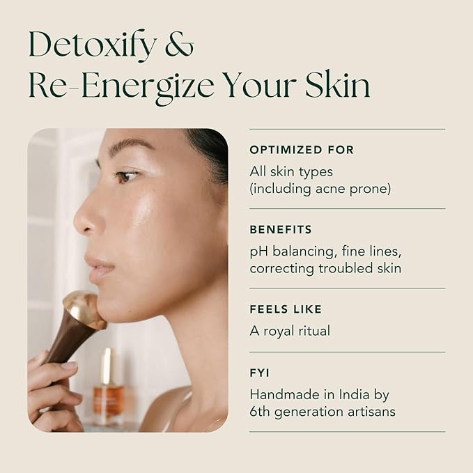 - Handmade Depuffing Facial Massager - The wand is hand made in Rajasthan, India by 6th generation kansa artisans. Used by practitioners of Ayurveda for centuries, skincare tools using pure Kansa, a sacred mix of copper and tin, lowers and balances skin’s pH to help calm irritation and redness.