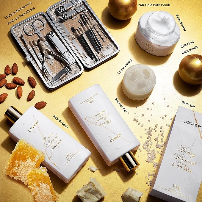 - HONEY ALMOND BEAUTY & PERSONAL CARE SET: This premium beauty & personal care package is infused with Almond Oil and Honey for an invigorating aromatherapy experience that is also one of the best things you can do for your skin! They are made with Natural Ingredients and is rich in Vitamin E and Shea Butter to protect and keep skin moisturized. Our Home Spa Basket is Paraben and Cruelty Free
