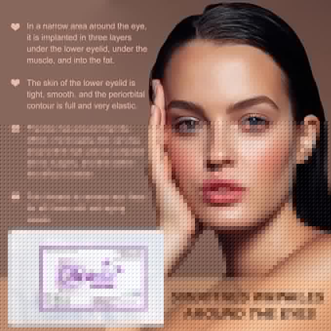 - Recommended for fine lines, crow's feet, lip augmentation, reduction of neck wrinkles, lower jaw, upper and lower cheeks, forehead lift, chin line, nasolabial fold (nose-mouth line) and mouth lift