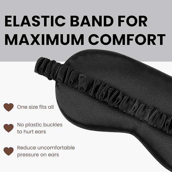 - Enjoy deep sleep: Satin sleep mask naturally blocks light, and sleeping in a completely dark environment increases melatonin (sleep hormone) levels and improves a sense of peace during sleep. Allows you to sleep all night, so that you can fall asleep faster and deeper every night