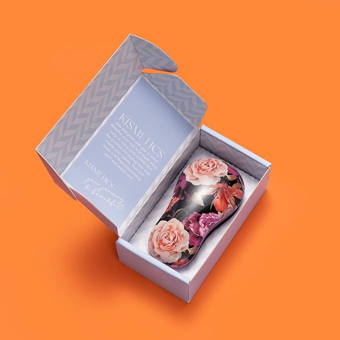 Hand Grip Brush, Gentle Detangling, Detangler Hair Brush for All Hair Types. For use on Wet or Dry Hair (Fuchsia Pink Floral)
