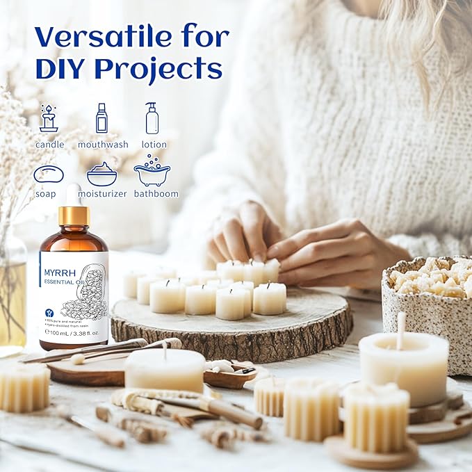 HIQILI Myrrh Essential Oil for Skin, Face, Diffuser, Add to Perfume, Toothpastes, Candle, Soap - 3.38 Fl Oz