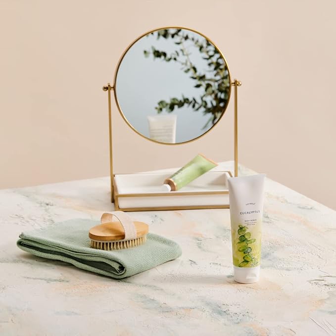 - Thymes Eucalyptus Body Scrub - A fresh and exfoliating body scrub infused with hydration-boosting sodium hyaluronate and walnut shell powder that gently cleanses to reveal soft, renewed skin and awaken the senses.