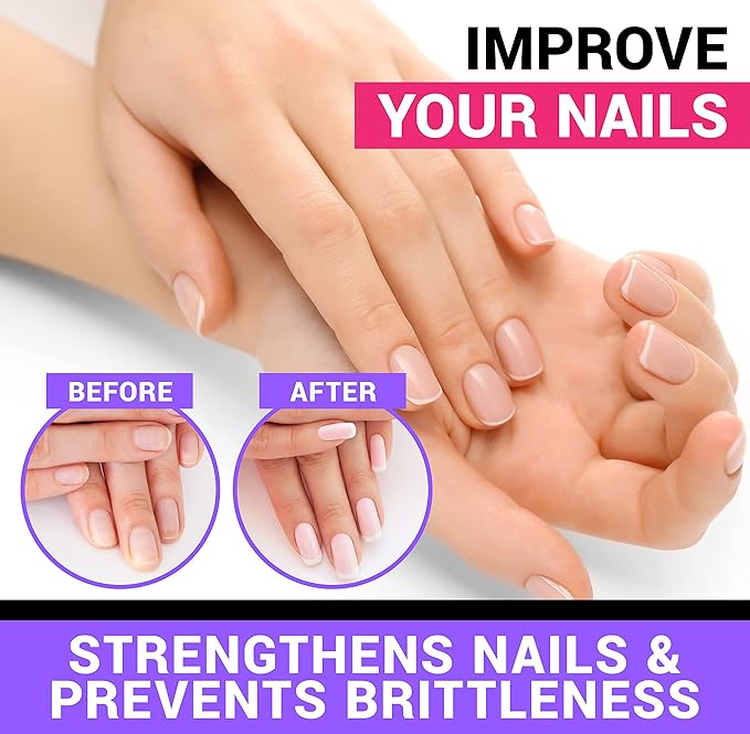 - STRENGTHENS NAILS & REDUCES BRITTLENESS: Biotin promotes nail strength, reduces brittleness, and supports the overall integrity of the nails. It promotes healthy cell growth and aids in the metabolism of protein-building amino acids that are essential for nail growth. Biotin supports nail firmness, hardness, and thickness.