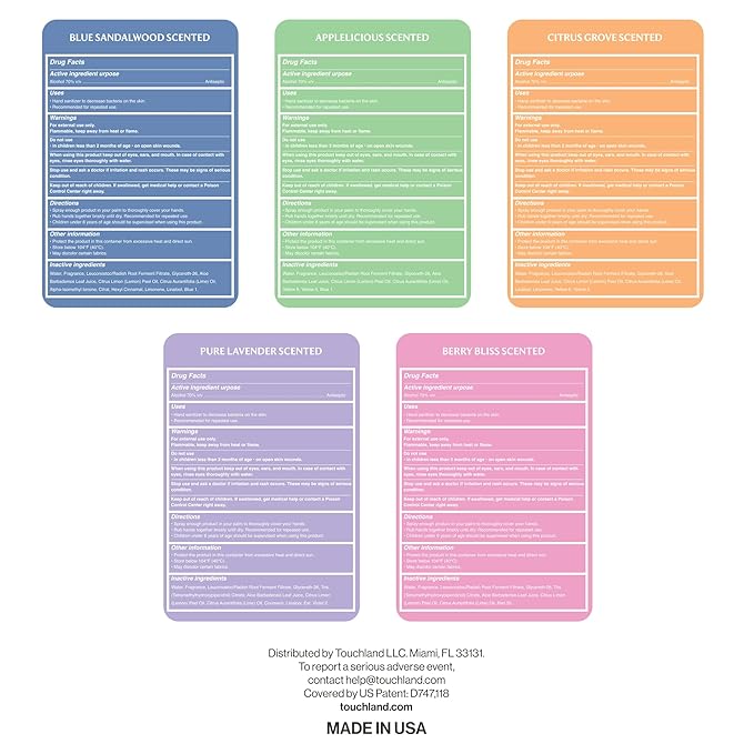 Touchland Power Mist Hydrating Hand Sanitizer Spray, TOP 5 Set (Applelicious, Sandalwood, Lavender, Berry, Citrus), 1 FL. OZ. Travel Size (Set of 5)