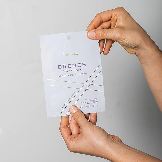 Karuna Skin - DRENCH Hydrating Sheet Mask, Pore-Minimizing Facial Skin Care Products, Hydrating Sheet Masks with Pear Extract & Peony, Face Mask for Skin with Acne & Dark Spots, 0.74 fl. oz./22 ml