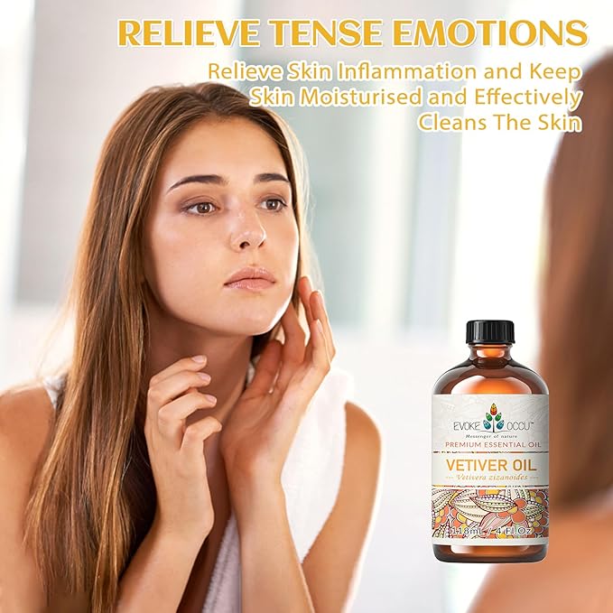 EVOKE OCCU Vetiver Essential Oil for Skin, DIY Candle Soap Making - 4 FL Oz