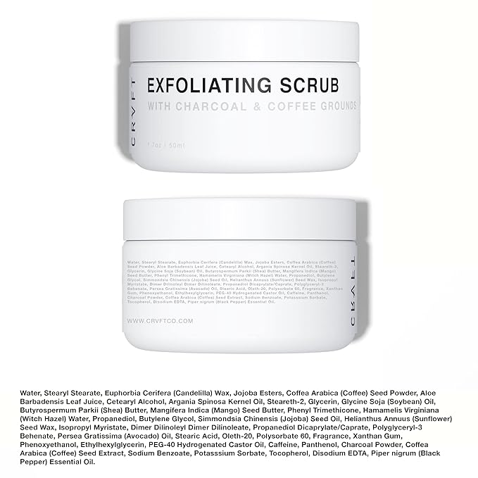 - EXFOLIATE AND SMOOTHEN SKIN - Exfoliating Scrub features a powerful yet gentle blend of Vitamins C & E to deliver softer-looking skin and decrease the appearance of fine lines. It also contains coffee grounds to energize and brighten your complexion and eco beads for a deeper clean.