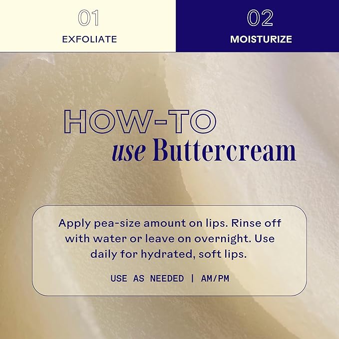 - BUTTERCREAM LIP MASK: Offering soothing relief and protection for damaged lips, this everyday Shea Butter lip balm leaves skin smooth, soft and supple. The rich formula is intensely moisturizing and revitalizing on chapped and peeling lips.