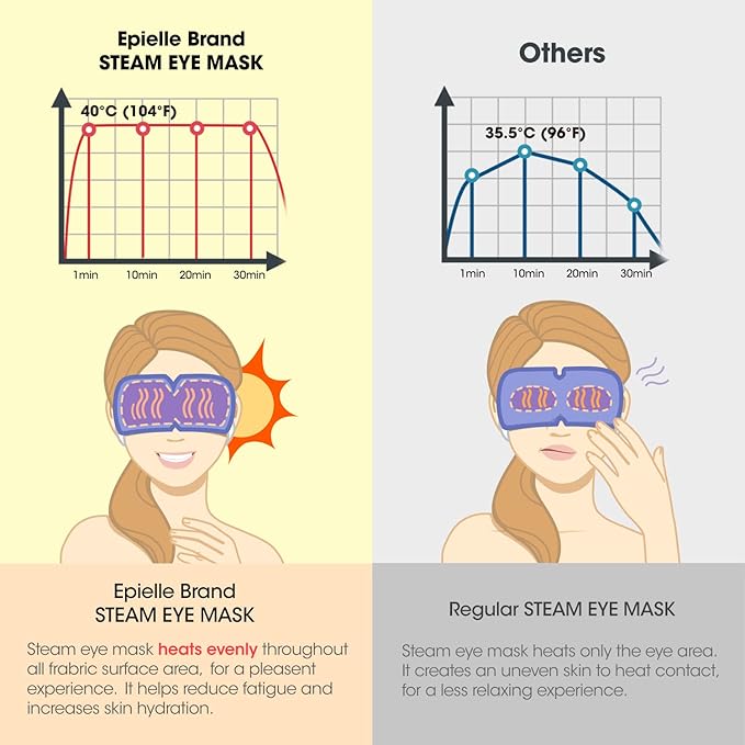 - STEAM EYE-MASK: The Self-heating Steambase Steam eye mask has Korea Onyang Hot Spring water steam that works in relaxing your eyes in just 20 minutes. Try all out scents: Crisp Air, Sweet Lavender, Soft Grapefruit, Herbal Chamomile, Unscented, and Rose Garden.
