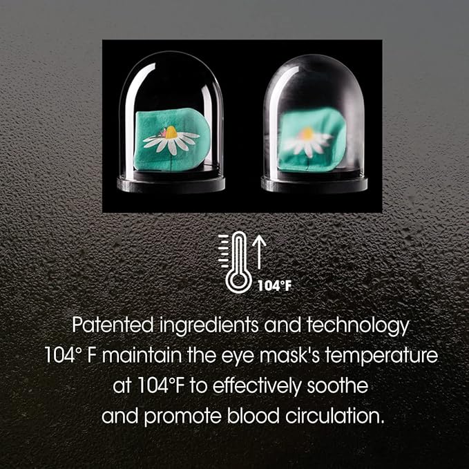 - SELF HEATING: Special steam system. With patented technology, it releases and maintains up to 40 degrees Celsius (104 fahrenheit), moist heat for up to 20 minutes. Goggle design fits securely and comfortably around the eyes.