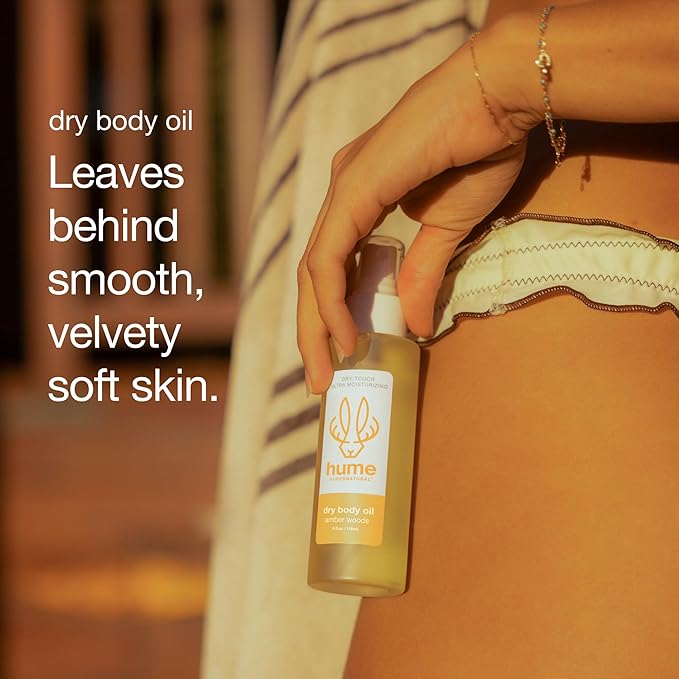HUME SUPERNATURAL Dry Body Oil Spray - Ultra Hydrating Oil for Dry Skin, Light and Nourishing Body Oils for Women and Men, Long-Lasting Moisture (Amber Woods 2-Pack)