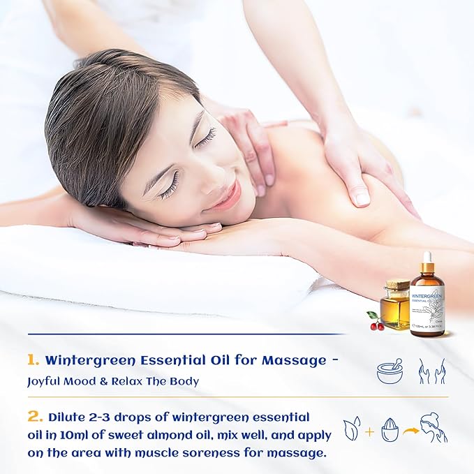 HIQILI Wintergreen Essential Oil,100% Pure Natural,for Diffuser-Inhalation Therapy - 3.38 Fl Oz