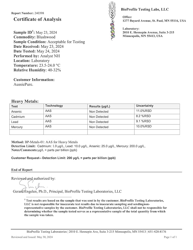 - INDEPENDENT LABORATORY TESTING FOR authenticity, pesticides, and heavy metals. No fillers, animal testing, or nasty synthetic toxic chemicals