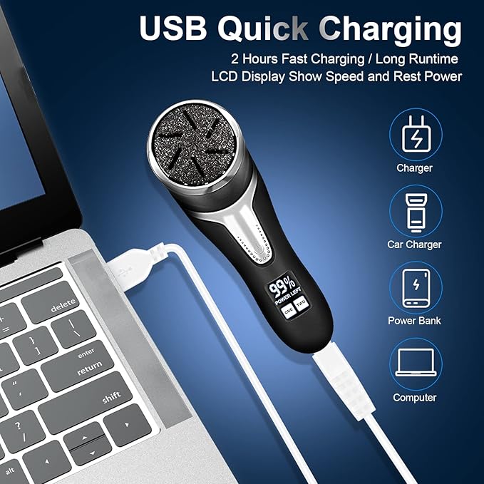 Electric Callus Remover for Feet with Vacuum, Professional Pedicure Tools Kit, Rechargeable Waterproof Foot File for Foot Care Deadskin Remover with 3Heads&2Speed,LCD Display