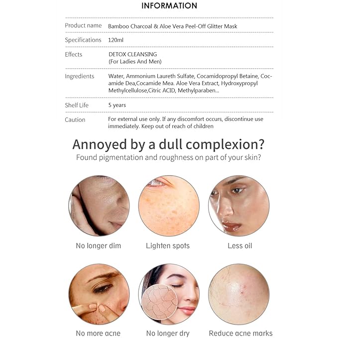 AICHUN BEAUTY Bamboo Charcoal Aloe Vera Peel-Off Glitter Mask Oil-Control Anti-Acne Moisturizing Detox Cleansing 10 minutes Facial Therapy 120ml/4.06fl.oz