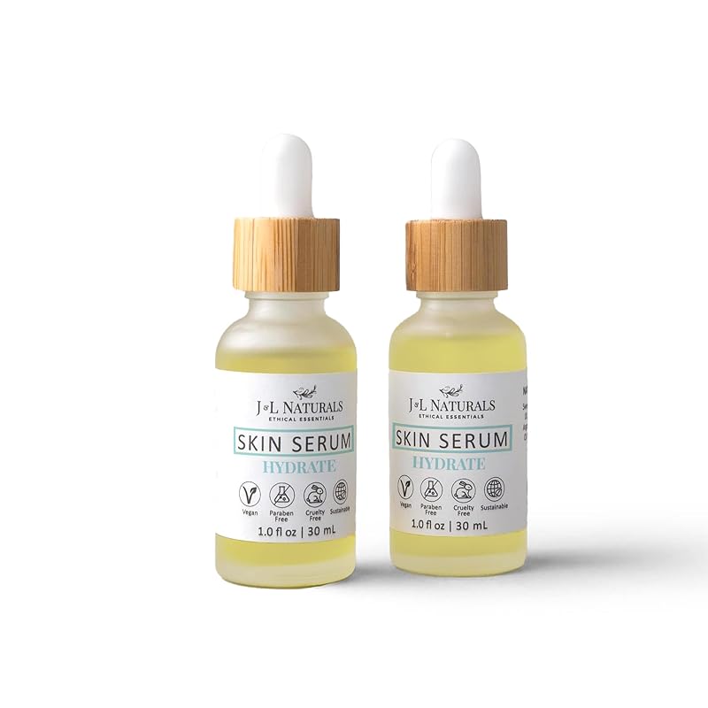 J&L Naturals | Face & Body Oil for Oily, Sensitive, Dry, Combination, Mature, & Dull Skin Types | With Jojoba Oil, Grapeseed Oil, Sunflower Oil, & More (1 Fl Oz (Pack of 2), Hydrate (dry))