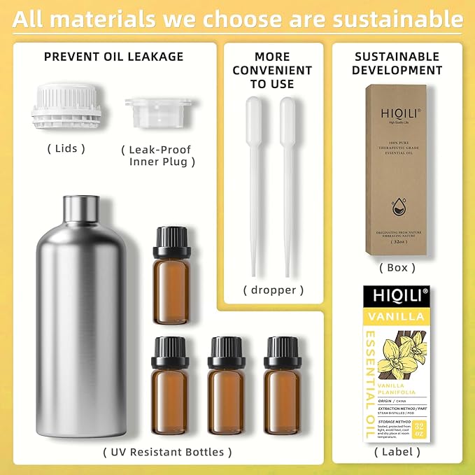 - Ingredient & Aroma: Our raw materials are sourced from China and extracted using the traditional steam distillation method. 100% pure vanilla essential oil has a fresh, slightly herbaceous aroma and a sweet, refreshing sensation