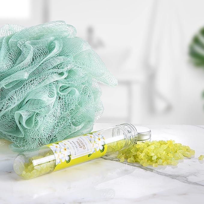- SET INCLUDES – This set comes with 5 tubes of bath salts that are all 1.51 oz. The bath salts are packaged in a beautiful wooden present box.
