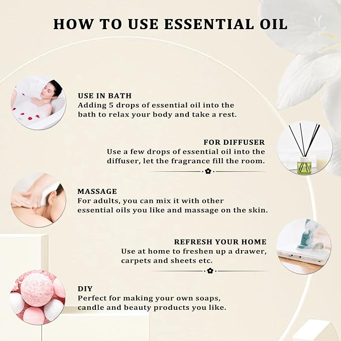 - Multiple Uses: Great for diffuser, DIY soap, candle making, bath bombs etc. Add some fragrance to your daily routine and fully enjoy the fun of the benefits of aromatherapy.