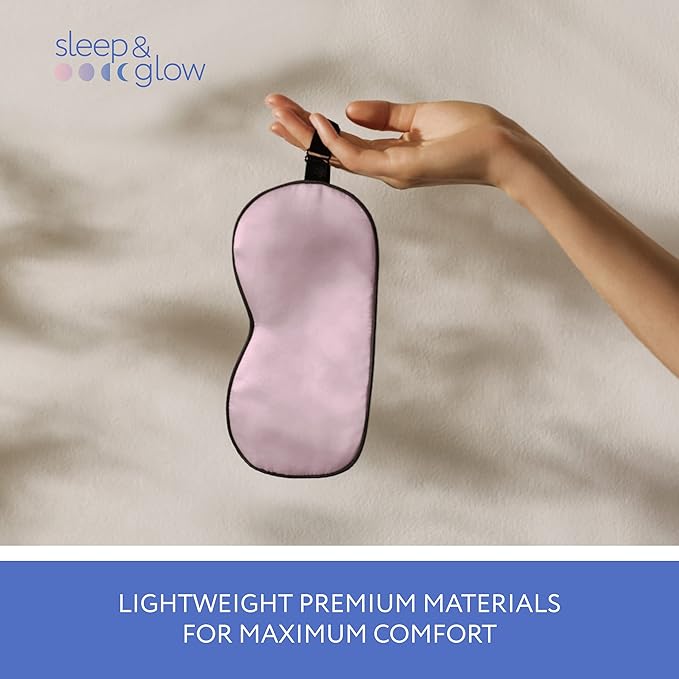 SLEEP & GLOW Silk Sleep Eye Mask Luxury Mulberry 22 Momme 100% Natural Triple Silk Blindfold with Adjustable Strap for Comfortable Sleeping & Face Skin Care (Pink)