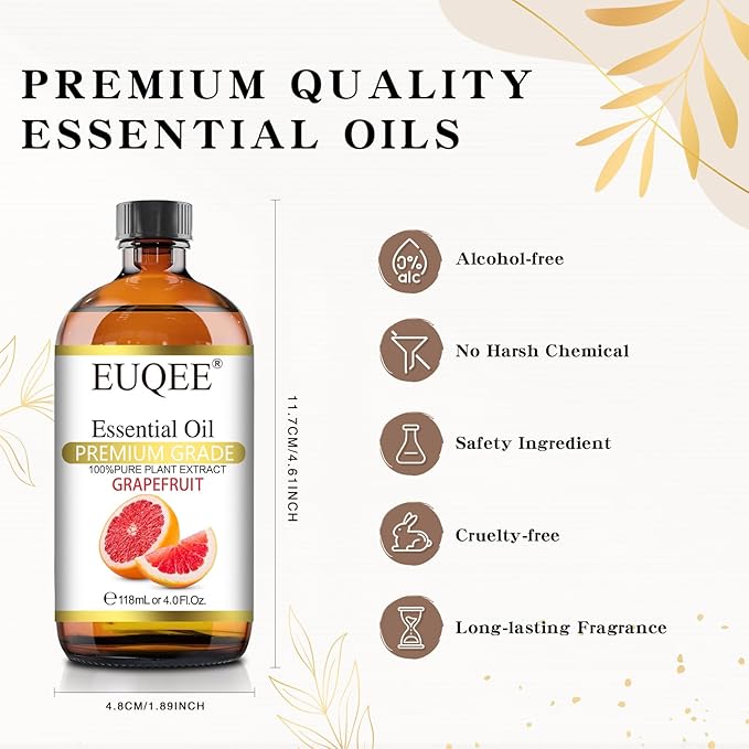 Grapefruit Essential Oil 118mL Pure Grapefruit Oil, Large Capacity Essential Oil with Glass Dropper for Diffuser, Aromatheraphy, DIY Soap (4fl.oz)
