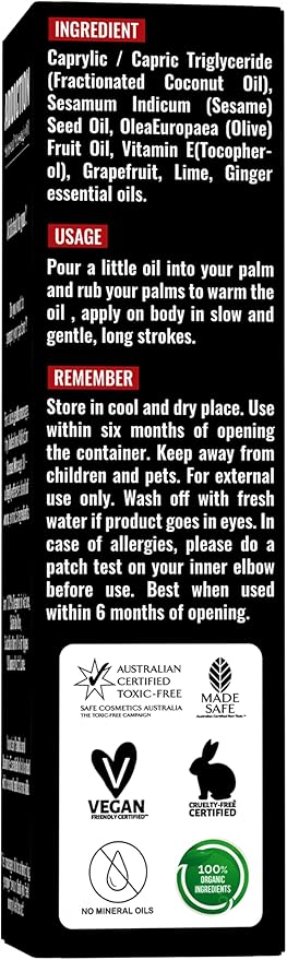 Organic - Grapefruit Full Edible Body Massage Oil - Refreshing, Calming | No Stain & Non-Sticky | with Fractionated Coconut Oil, Grapefruit & Lime Oil - 4.05 Fl Oz
