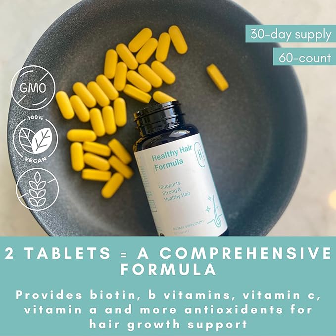 - MONTH-LONG SUPPLY: Our Healthy Hair supplement contains 60 tablets for a month-long supply. We recommend taking 2 tablets per day to promote visibly thicker, stronger hair growth, and less shedding. Get fuller and healthy hair using our all-natural hair growth supplement!