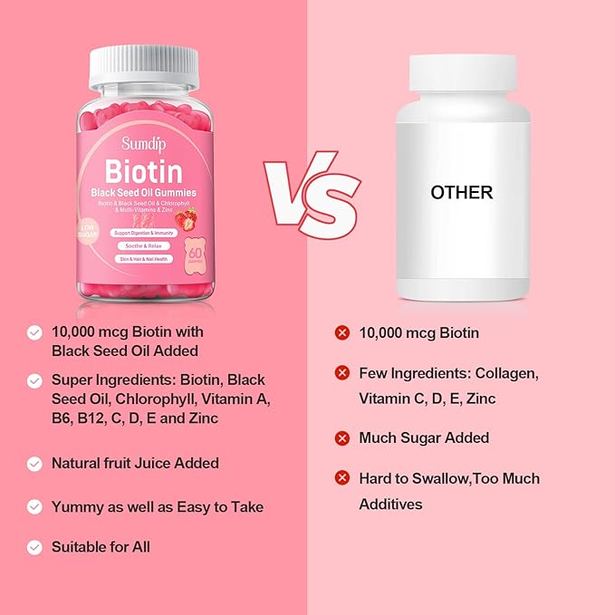 - ✿Black Seed Oil with Biotin - With no tough pill to swallow. These little yummy gummies help you remember to take your nutrients every day. Tasty gummies feature a delicious fruit flavor that makes them an easy and effective bite-sized solution.