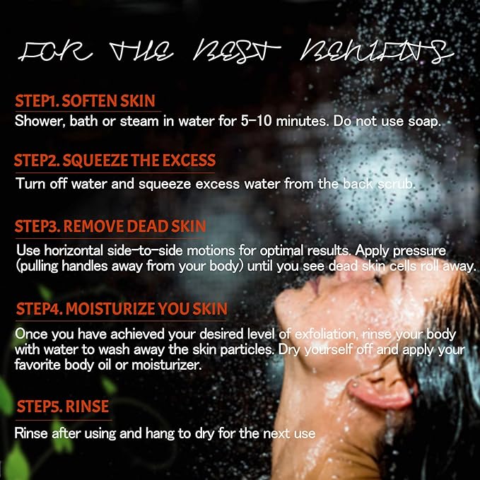 - Great Coverage: widen and longen ergonomic design can cover all of your back,the handles allow for maximal movement make it easy to maneuver around your back exfoliating and leaves skin smoother
