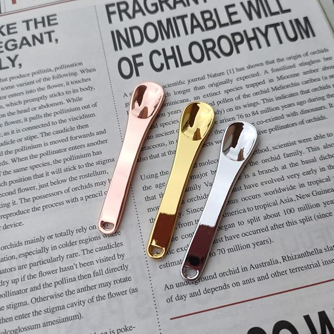 Honkenda 3 Pcs Metal Makeup Spatula Spoon, Reusable Mini Cosmetic Beauty Scoop for Facial Cream, Lotions, Moisturizers, Face Mask (Gold, Silver, Rose Gold)