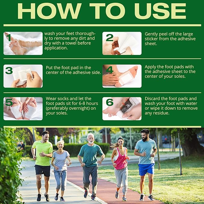 - Simple Application: Apply the deep cleansing foot pads securely to the middle of your foot before bedtime. Allow 6-8 hours for complete utilization before gently removing the pads. Afterward, cleanse your feet to enjoy an improved sense of well-being!