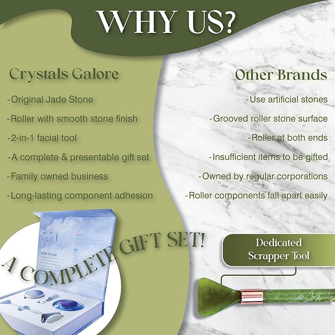 - [PREMIUM JADE ROLLER AND GUA SHA SET]: We care for your well-being, we have used only a real jade stone in our jade roller and gua sha facial massager. The fine stone finish won’t harm your skin