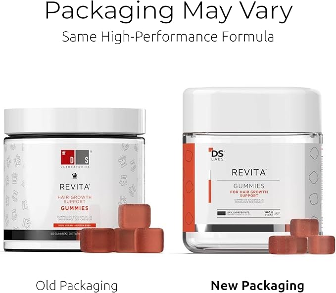 DS Laboratories Revita Hair Growth Gummies, Biotin, Vitamin D, Iron, Magnesium, Melatonin & Zinc Supplement, Vegan, Supports Thicker Hair Growth, Gluten Free (Packaging May Vary)