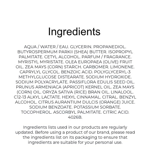 - BODY MOISTURIZING CREAM: For a longer-lasting fragrance apply after using the shower gel before our spray lotion