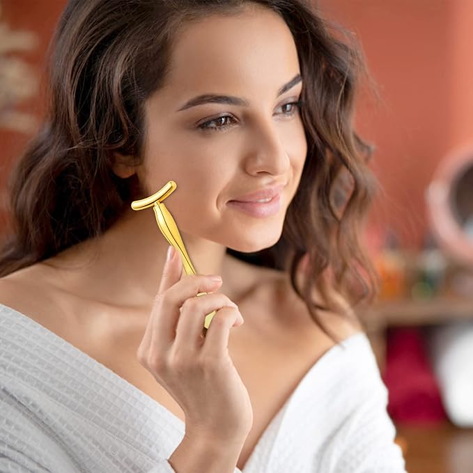 Pimoys 2 Pcs Metal Eye Cream Applicator Face Roller Massager Tool,Eye Massage Wand Stick Girls Women Facial Massager for Reducing Puffiness Wrinkle