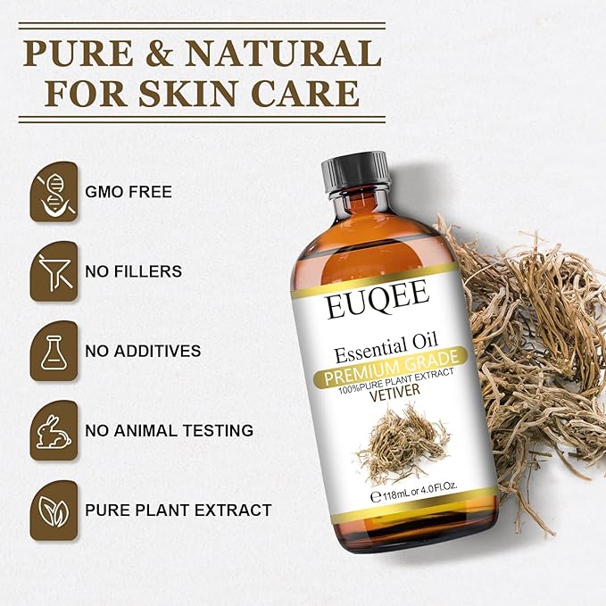 Vetiver Essential Oil 4oz/118ML Large Bottle Vetiver Oil Premium Essential Oil for Candle Making, Humidifier, Diffusers - with Glass Dropper