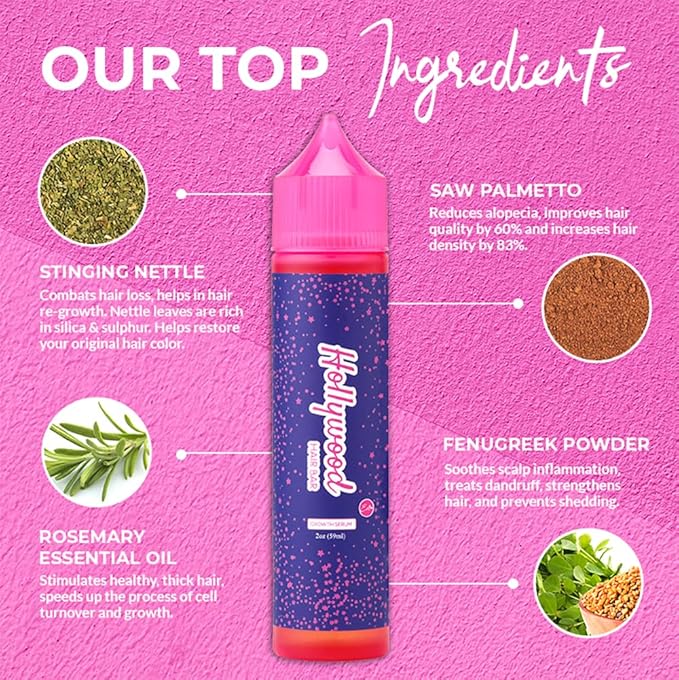 Hollywood Hair Bar | Hair Oil Regrowth Serum - Extra-Strength, Made with All-Natural Essential Oils (Squeeze Bottle) 2 oz