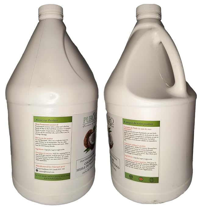 PUROLEO Fractionated Coconut Oil 128 Fl Oz/3784 ML (Packed In Canada) 100% Natural and odorless Moisturizer & Carrier Oil l Hair Skin Body, Aromatherapy, Massage, Makeup Remover