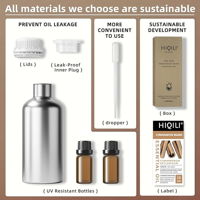 HIQILI Cinnamon Essential Oil for Candle, Spary & Diffuser - 100% Pure Natural - Indoor and Outdoor