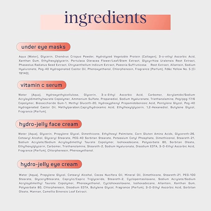 - VITAMIN C EYE REVITALIZATION: Infused with the power of Vitamin C, these patches specifically target under-eye concerns. Say goodbye to puffiness and dark circles as these patches work their magic, leaving you with refreshed and revitalized eyes that sparkle with health.