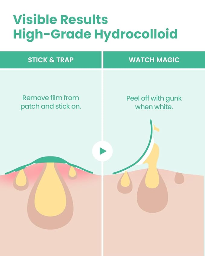 - 💦 SWEAT + WATERPROOF - The hydrocolloid patch effortlessly adheres to your skin and stays put, working its magic for as long as you need it to. Easy to remove without any redness, irritation, or discomfort.