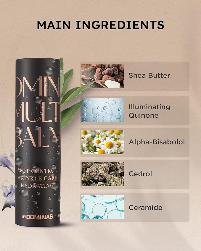 - ULTIMATE BLEMISH CARE - DOMINAS Multi Balm is a smart balm stick that can address and effectively provide solutions to all kinds of skin pigmentation issues - thanks to the core Quinone Complex ingredient exclusive to DOMINAS products containing CoQ10, niacinamide, etc.