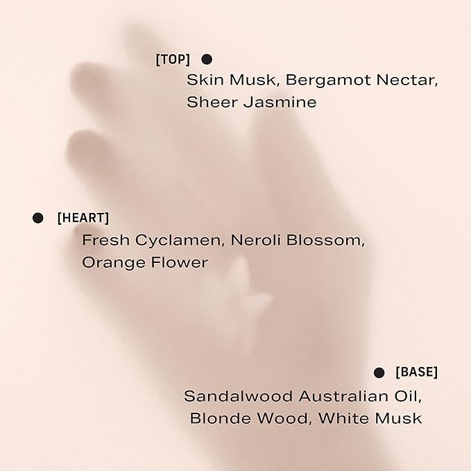 - SCENT NOTES: Top - Skin Musk, Bergamot Nectar, Sheer Jasmine. Heart - Fresh Cyclamen, Neroli Blossom, Orange Flower. Base - Sandalwood Australia Oil, Blonde Wood, White Musk.