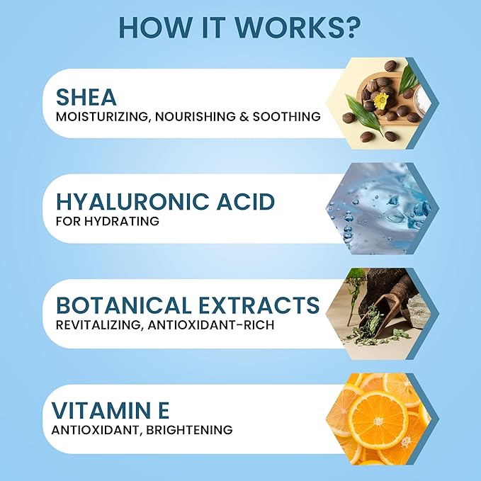 - π ANTI-AGING FORMULA: Contains Hyaluronic Acid and Shea Butter to smooth wrinkles and fine lines, promoting youthful skin.