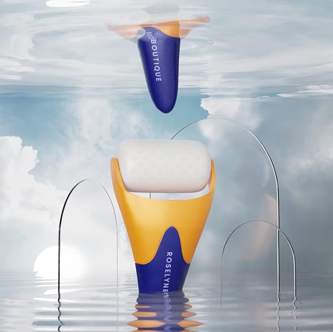 ROSELYNBOUTIQUE Ice Roller for Face Wrinkles Fine Lines Puffiness Stick Massager Facial Skin Care Tools Self Care Gifts for Men Women (Orange Blue)