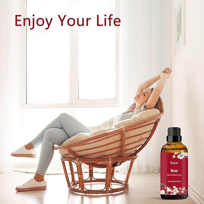 Rose Essential Oil 100ml (3.3 Fl Oz), ESSLUX Aromatherapy Essential Oils for Diffuser, Massage, Soap, Candle Making, Home Fragrance