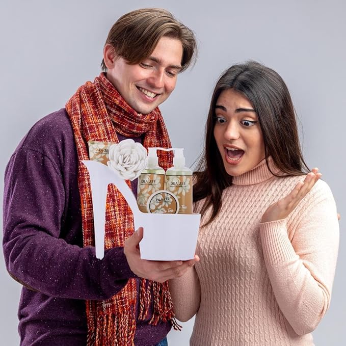 Draizee Mothers Day Gifts for Mom-Spa Gift Baskets for Women-6 Pcs Luxury White Tea Scented Heel Shoe Design Bath and Body Spa Set, Self Care Package for Women, Presents for Mom, Body Care Set for Her