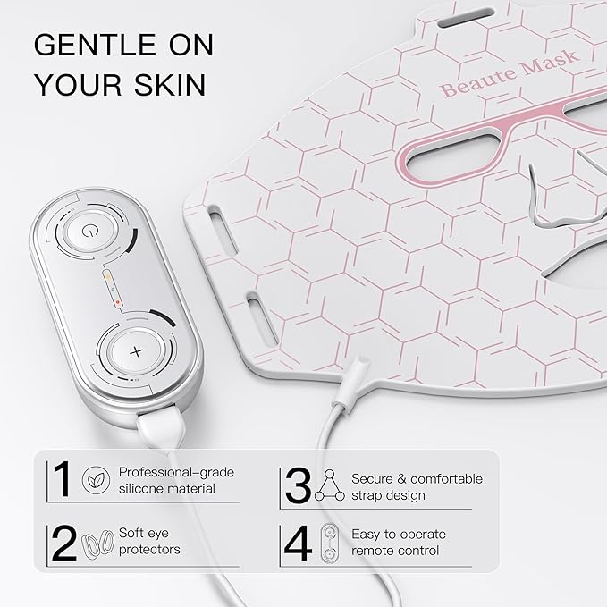 - 【Premium Comfort and Durability】Crafted from medical-grade silicone material, our led light face mask ensures exceptional comfort during use. The soft and flexible design contours to the face perfectly, allowing for a snug fit and extended periods of face mask skin care.