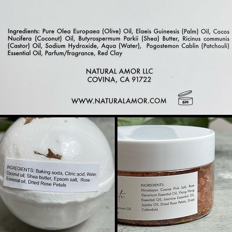 Natural Amor Rose Spa Gifts for Women,4pcs Self Care Box Including Soap Bar, Bath Bomb, Bath Salt,Thank You Gift for Women